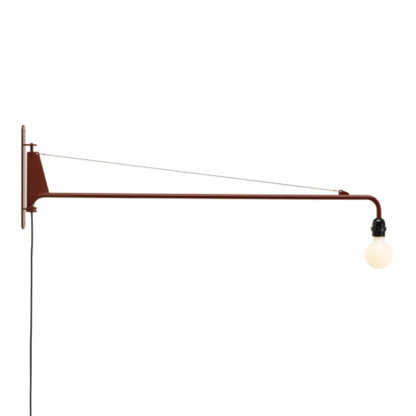 Jean Prouvé a créé la première version de la lampe murale Potence pour sa propre maison à Nancy dans les années 1940 : une simple ampoule fixée à une longue barre pivotante en acier, maintenue par un fil d’acier. Cette création épurée et fonctionnaliste a rapidement été produite en différentes tailles, avec une poignée supplémentaire sur les modèles plus grands pour faciliter le mouvement pivotant. Petite Potence a des proportions similaires au grand modèle Potence, ses dimensions compactes étant idéales pour les petits intérieurs. Le bras oscillant mesure 103 cm de long, avec une finition époxy aux couleurs dérivées des teintes d’origine utilisées par Prouvé. Le câble est gainé d’une enveloppe textile de haute qualité et l’ampoule LED est variable. Grâce à son esthétique minimaliste, Petite Potence est une solution d’éclairage idéale pour une grande variété d’environnements, des salles à manger et salons aux bureaux et cafés.