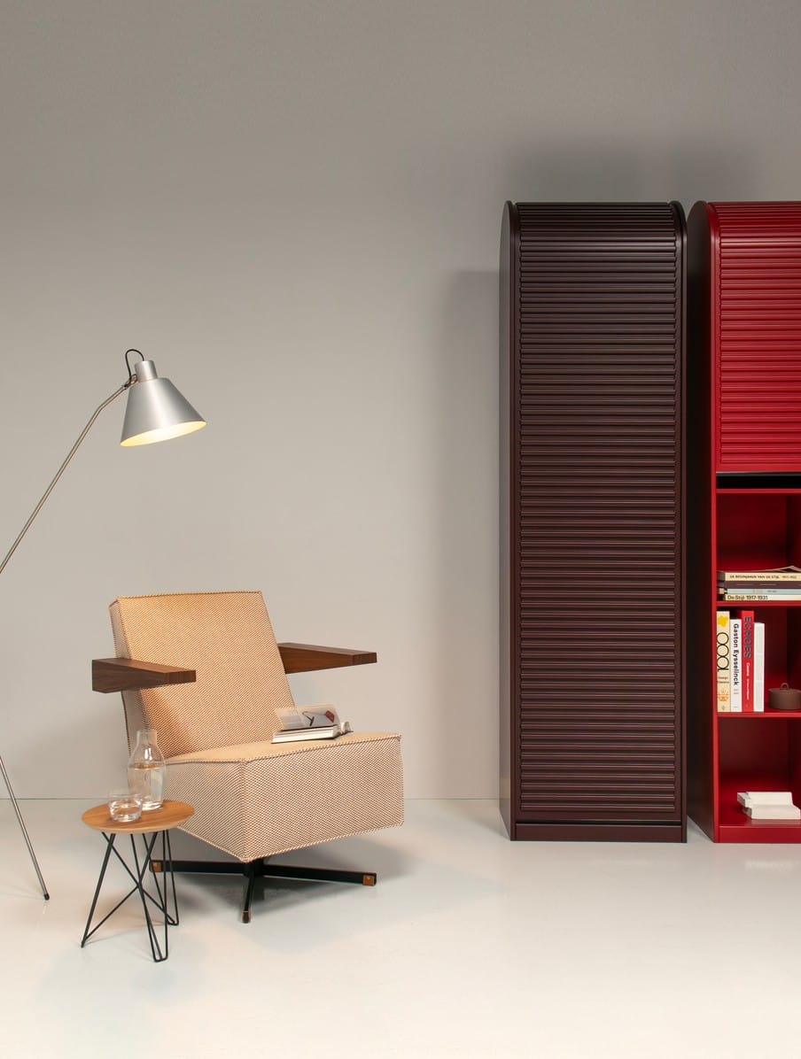 Le meuble de rangement A’dammer, élégant et ludique, se distingue par son volets roulant distinctif. Ce détail astucieux vous permet d’exposer ou de dissimuler facilement le contenu de l’armoire, l’obturateur roulant disparaissant proprement à l’arrière lorsqu’il est ouvert. L’A’dammer tire son nom des célèbres bornes que l’on trouve dans les rues d’Amsterdam.