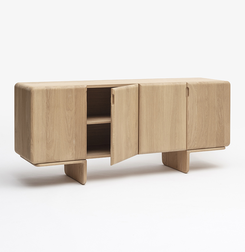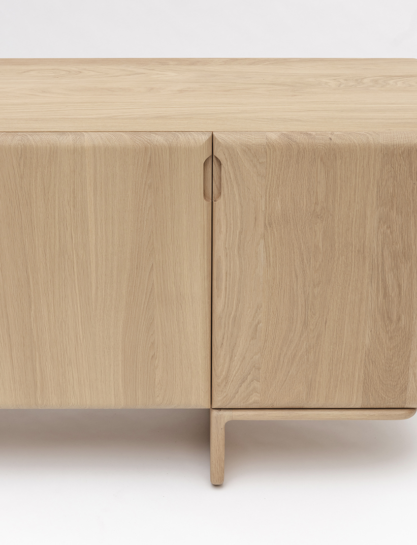 Le travail des ébénistes et la sensualité du chêne massif se révèlent dans les lignes arrondies et douces du buffet TÉHÈME : poignées creusées dans le bois, charnières freinées, assemblages parfaitement ajustés, ponçage manuel des moulures. Livré avec deux tablettes amovibles.Chêne français 100% massif issu de forêts gérées durablement – Fonds replaqués chêne 6/10 façon massif. Livré monté – Deux tablettes amovibles en chêne massif fournies. Fabriqué en France (Anjou)