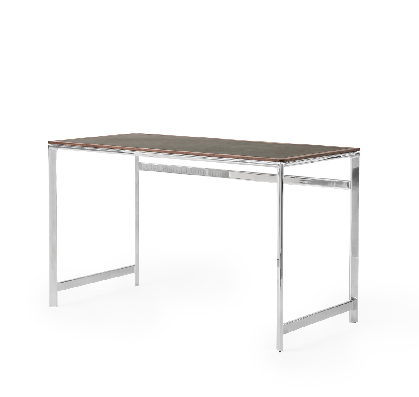 Vipp poursuit son parcours avec l’aluminium naturel en lançant un nouveau bureau à domicile fabriqué en aluminium brut. Le bureau propose un plateau de table disponible en marbre ou en cuir, avec des options en cuir associées à un cadre en noyer ou en chêne clair. Possibilité d’intégré un petit tiroir ( en option)