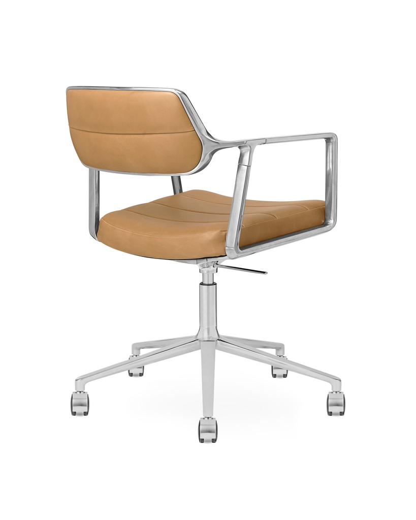 Chaise pivotante sur roulettes Vipp453+, Cuir Camel, Aluminum