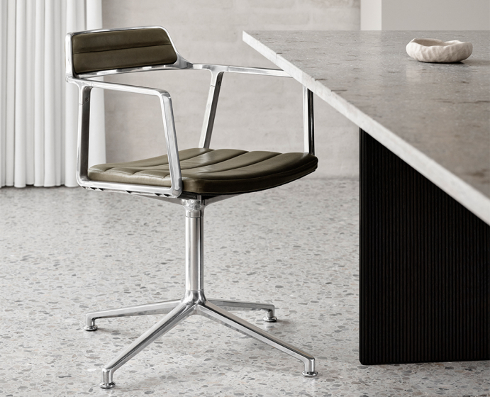La chaise pivotante Vipp 452 est une extension confortable et unique pour votre bureau à domicile. Le design industriel est mis en évidence par les matériaux robustes utilisés, l’acier et le cuir, et est rendu extrêmement élégant avec le dossier étroit créé par les accoudoirs simples mais particulier. La chaise a une structure en aluminium thermolaqué avec une assise et un dossier recouverts de cuir qui vous permet de pivoter à 360 degrés autour de la base à quatre pieds, ce qui donne une très bonne liberté de mouvement. 452 est une petite série de modèles très fonctionnels qui ajoutent une touche d’élégance et de style, et peuvent être avantageusement placés dans le salon ou le bureau à domicile. Disponible également sur roulettes .