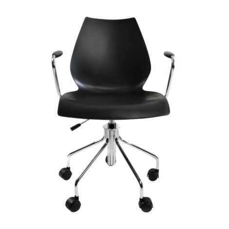 Fauteuil à roulettes réglable en hauteur. L’assise en polypropylène est particulièrement confortable grâce à son dossier incurvé. Une chaise idéale pour votre bureau, les collectivités ou pour le « home office ». La base, composée de cinq branches, rejoint la structure en acier chromé. Cette chaise et légère et maniable. Disponible en anthracite et blanc.