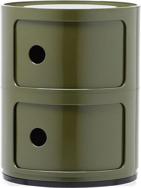 Petit meuble de rangement iconique de Kartell créé par Anna Castelli Ferrieri en 1969. Les éléments ronds ou carrés peuvent s’encastrer les uns sur les autres. Ce meuble convient à toutes les pièces de la maison. Meuble d’appoint pour une salle de bain, table de nuit pour une chambre, table d’appoint pour une pièce de vie… Ce meuble modulable existe en plusieurs niveaux, de deux à quatre tiroirs de rangement. Existe dans différentes couleurs : blanc, argenté, bleu, vert, violet, noir, rouge.