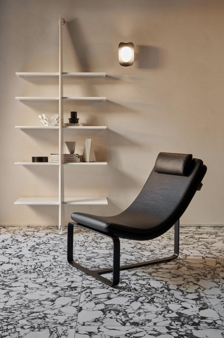 Mac Gee est une bibliothèque modulaire en acier peint, complètement démontable et recyclable. Il dispose de cinq étagères à profondeur décroissante et est disponible en noir mat, blanc mat ou argent métallisé.