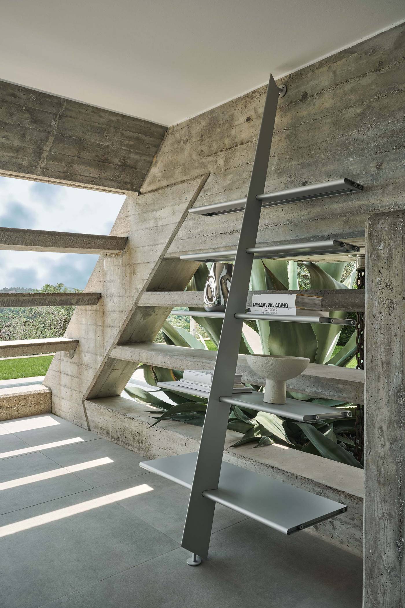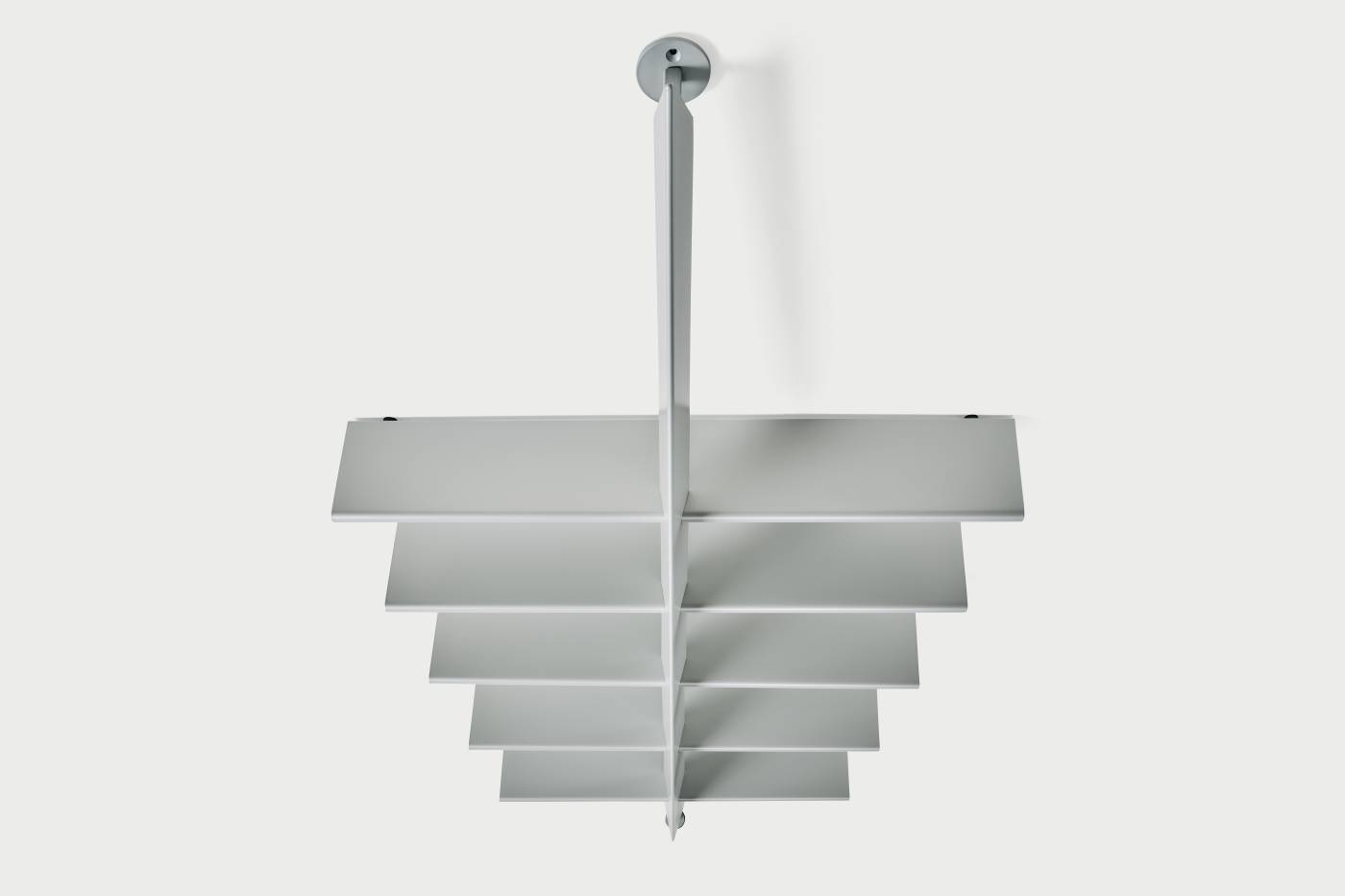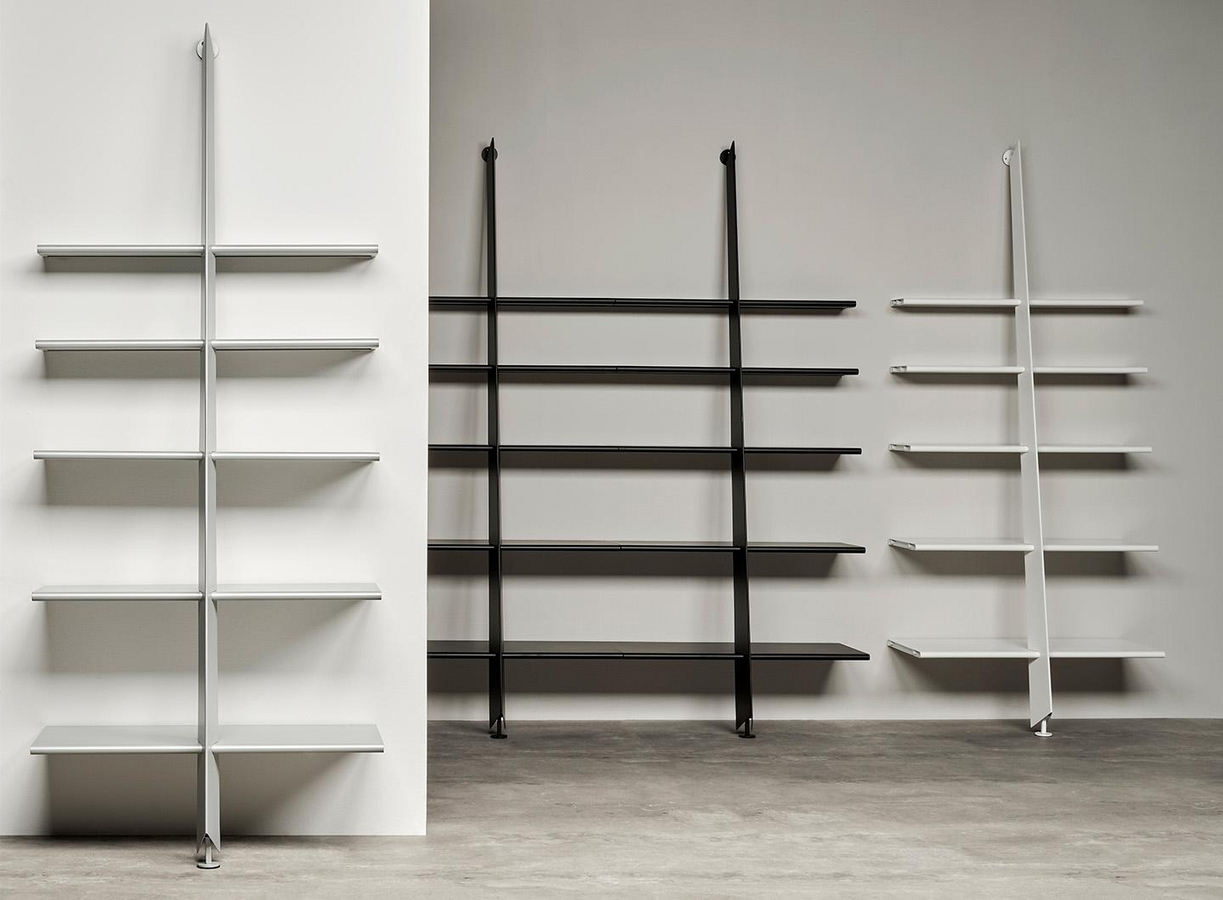 Mac Gee est une bibliothèque modulaire en acier peint, complètement démontable et recyclable. Il dispose de cinq étagères à profondeur décroissante et est disponible en noir mat, blanc mat ou argent métallisé.