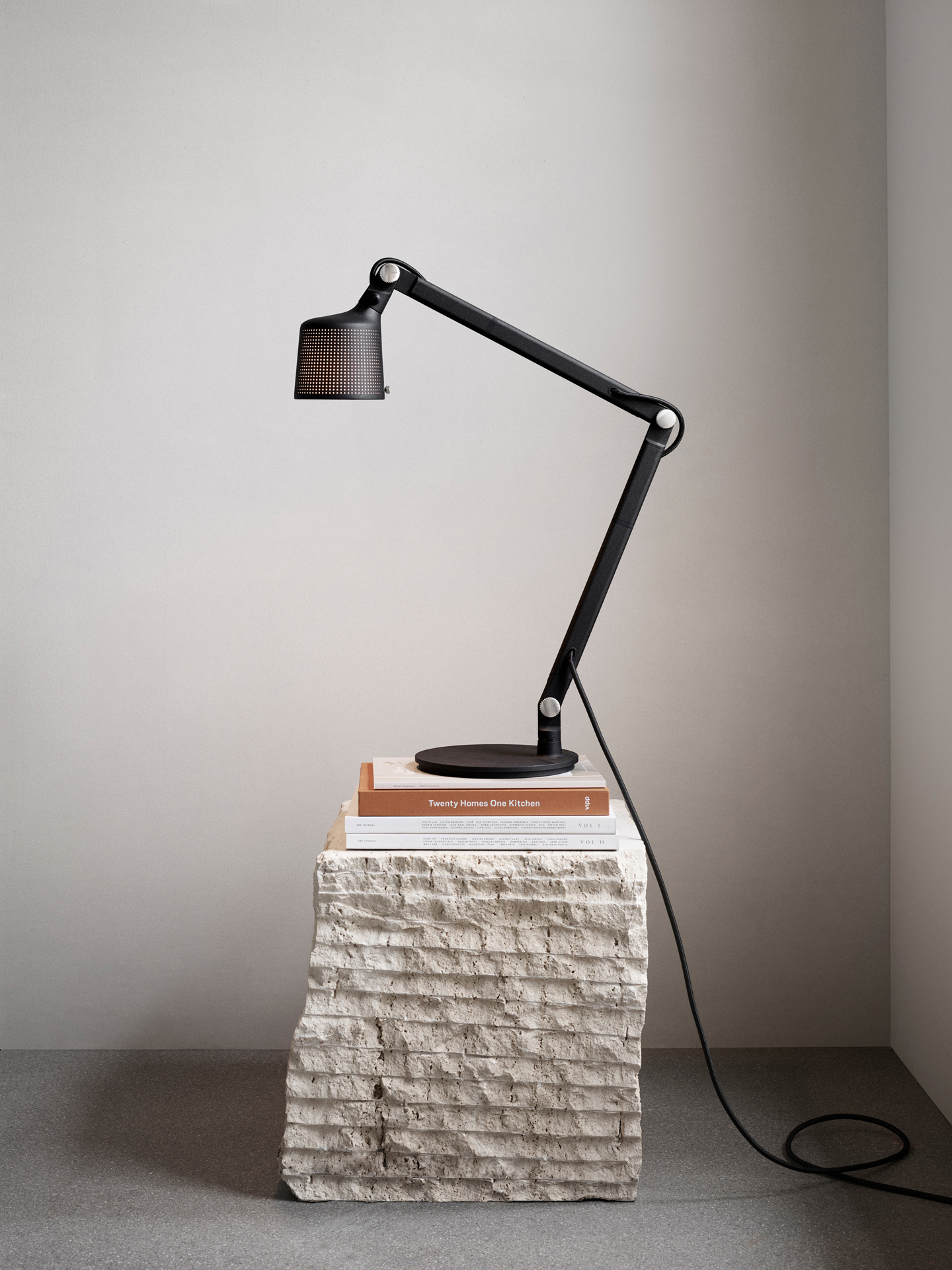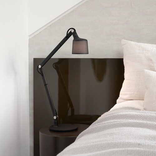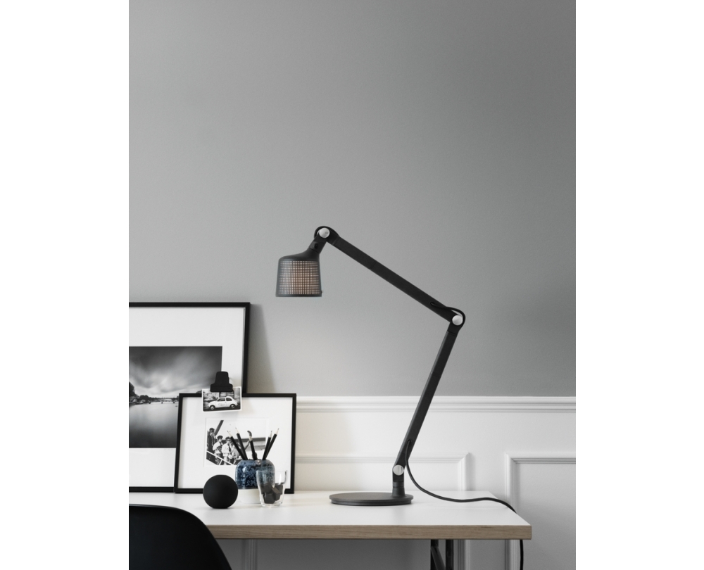 La lampe de bureau Vipp 521 est une lampe de table minimaliste en aluminium et en acier inoxydable revêtu de poudre. L’abat-jour de la lampe de table Vipp 521 présente une subtile perforation et dispose d’un diffuseur blanc intégré. La lentille mate d’un blanc opale couvre la puissante source lumineuse LED remplaçable. Cela crée une lumière agréable qui rayonne diffuse vers l’environnement et brille puissamment vers le bas. Compatible avec les ampoules des classes énergétiques de A à G. Classification : E14 MAX 15W. Pour de meilleures performances, nous recommandons un type P45, 470 lm et 2700K. Non dimmable.