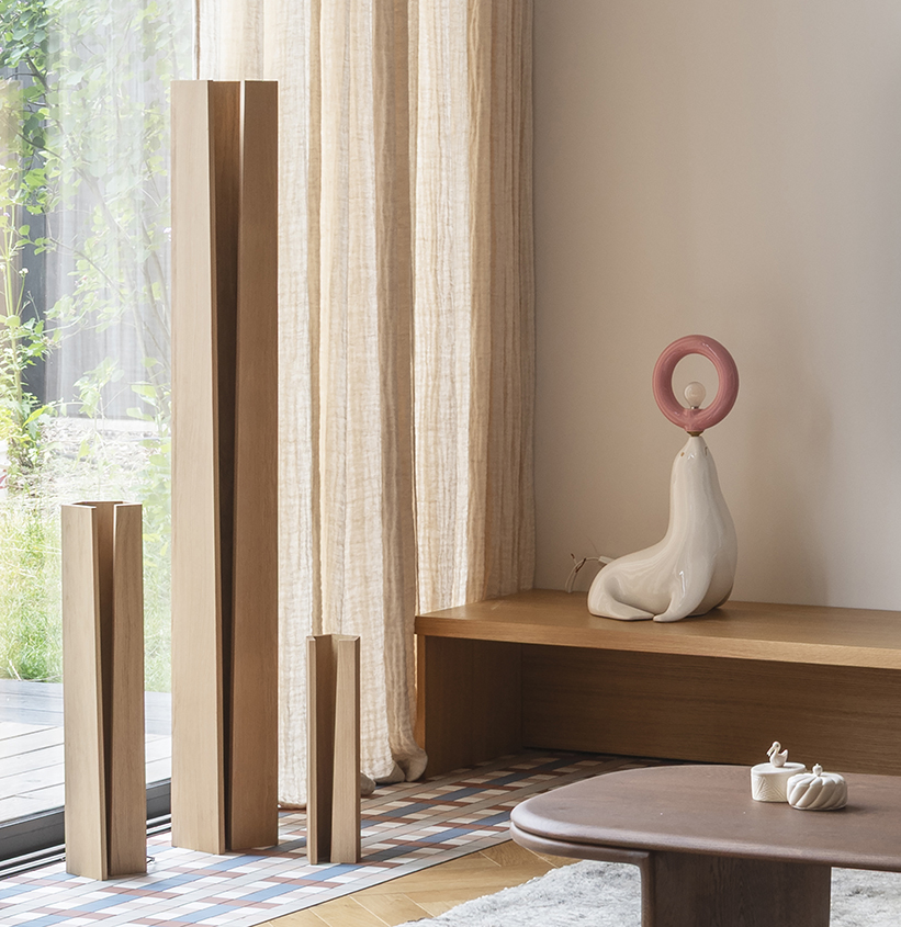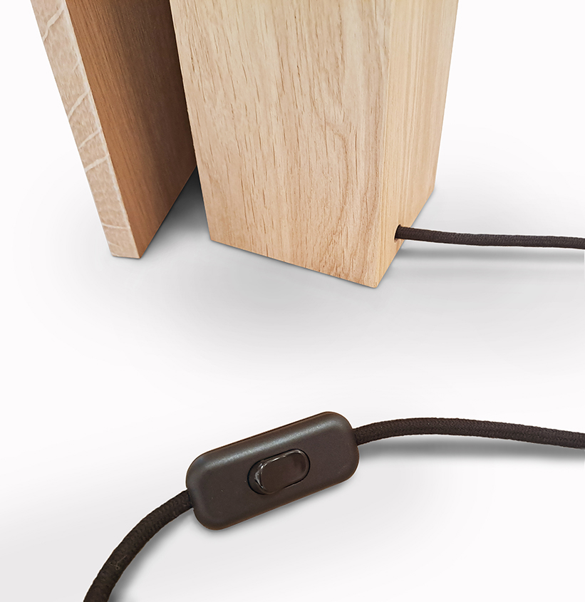 Élégante et élancée, la lampe ÉLAGONE met en lumière la beauté du chêne massif naturel. Niché en son centre, un éclairage LED diffuse une lumière chaude qui vient se refléter sur les parois intérieures de la lampe.Éclairage LED, cordon textile L. 1,45M et interrupteur fournis