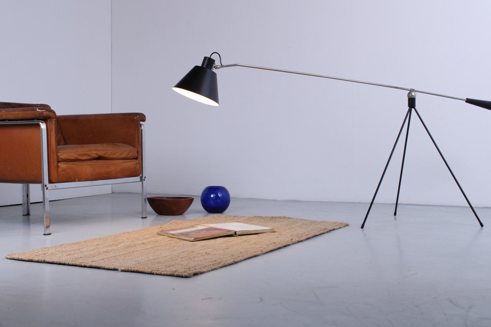 La lampe sur pied Magneto, conçue par Henk Fillekes dans les années 1950, est une véritable icône du design néerlandais. Sa caractéristique distinctive est la boule magnétique sur la base élégante du trépied, permettant de faire pivoter le bras et l’ombre sans effort dans la position souhaitée. Ce mécanisme innovant, qui a donné son nom à la lampe, permet de diriger la lumière précisément là où elle est nécessaire, donnant aux utilisateurs la liberté d’adapter l’éclairage à leurs besoins spécifiques.