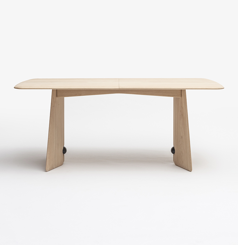 La table de repas FARFALLA, dessinée par Constance Guisset, avec son design organique et ses courbes délicates, reflète le savoir-faire des ébénistes français et met en valeur la beauté du veinage du chêne massif. Ici dans sa version extensible, elle vient avec une tablette en chêne massif externe.