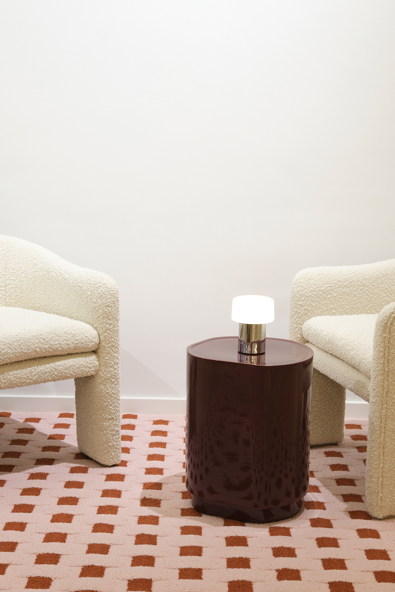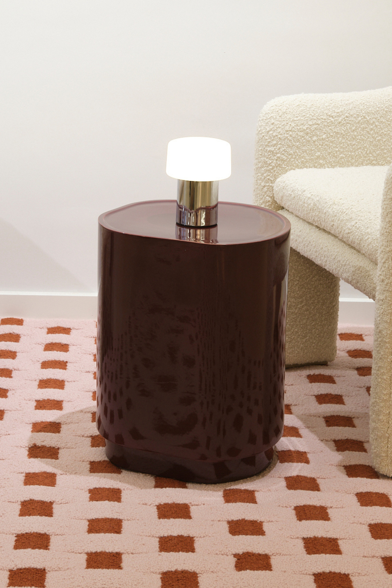 Elle est proposée en deux formats et dans une palette de tons sobres et chaleureux : Blanc Mat, Sable, Ébène, Cannelle et Bordeaux.Idéale en bout de canapé, en table de chevet détournée ou en complément autour d’un fauteuil, elle joue avec la lumière et les textures pour enrichir subtilement tout environnement